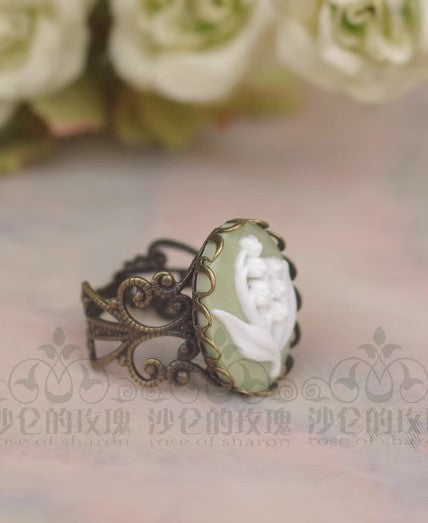 Handmade Vintage Cameo Necklace & Ring Set