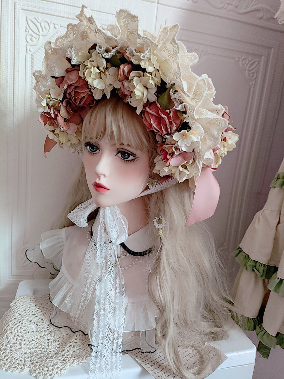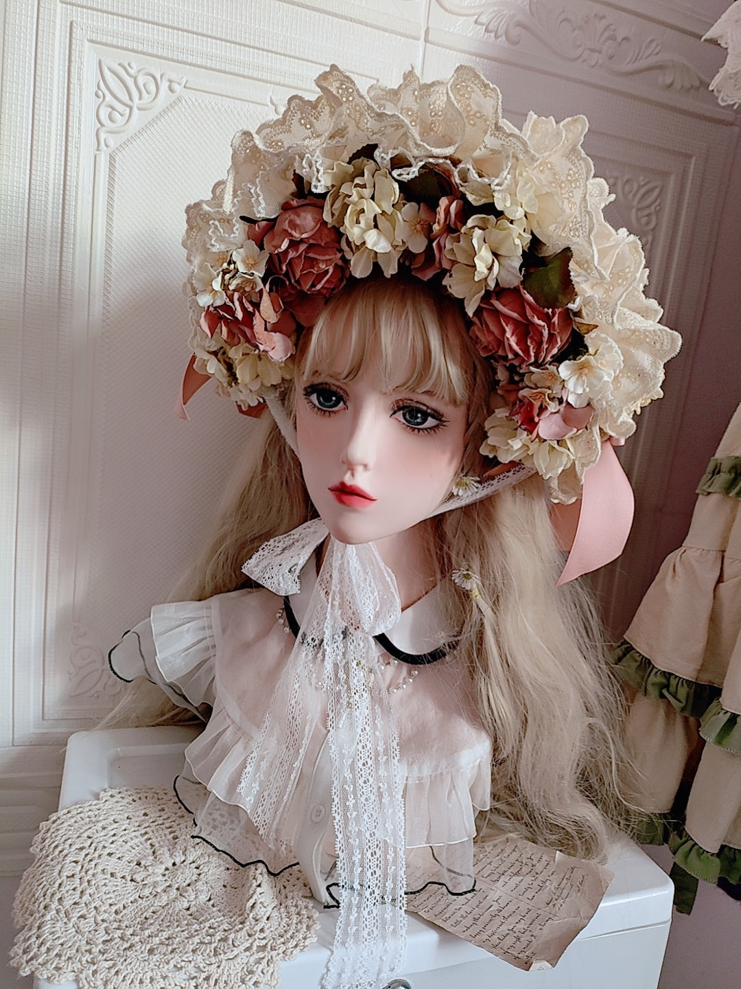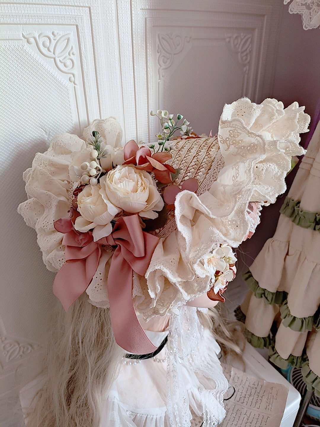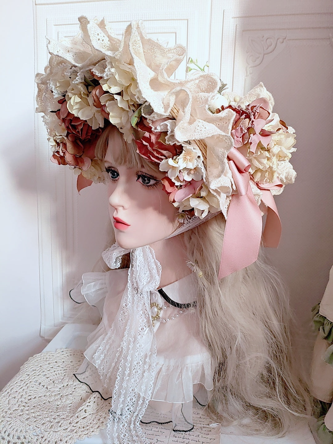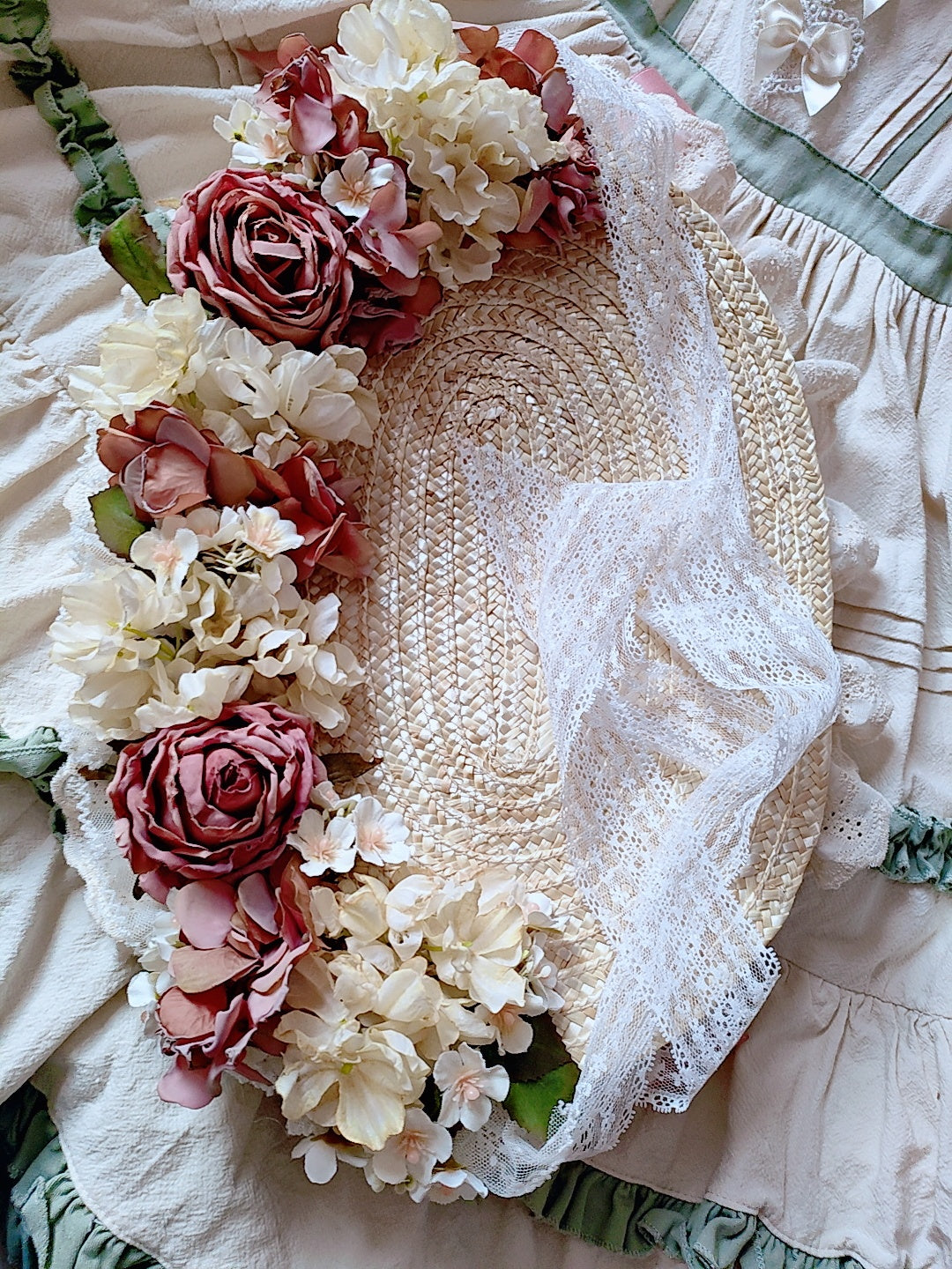 Material: Straw, artificial flowers, lace