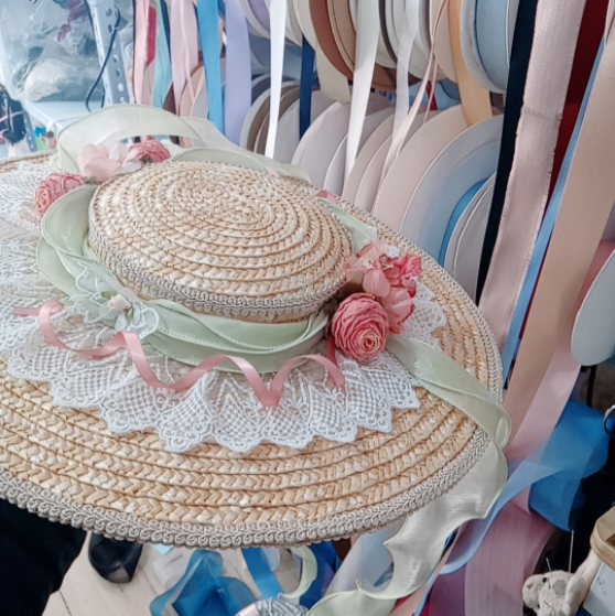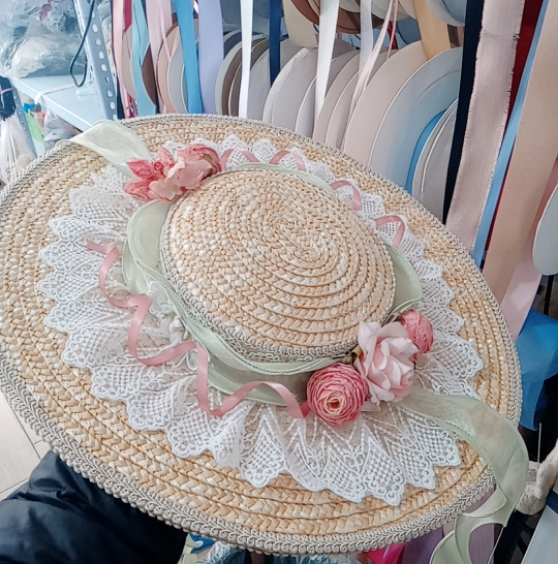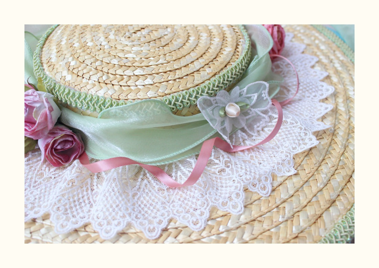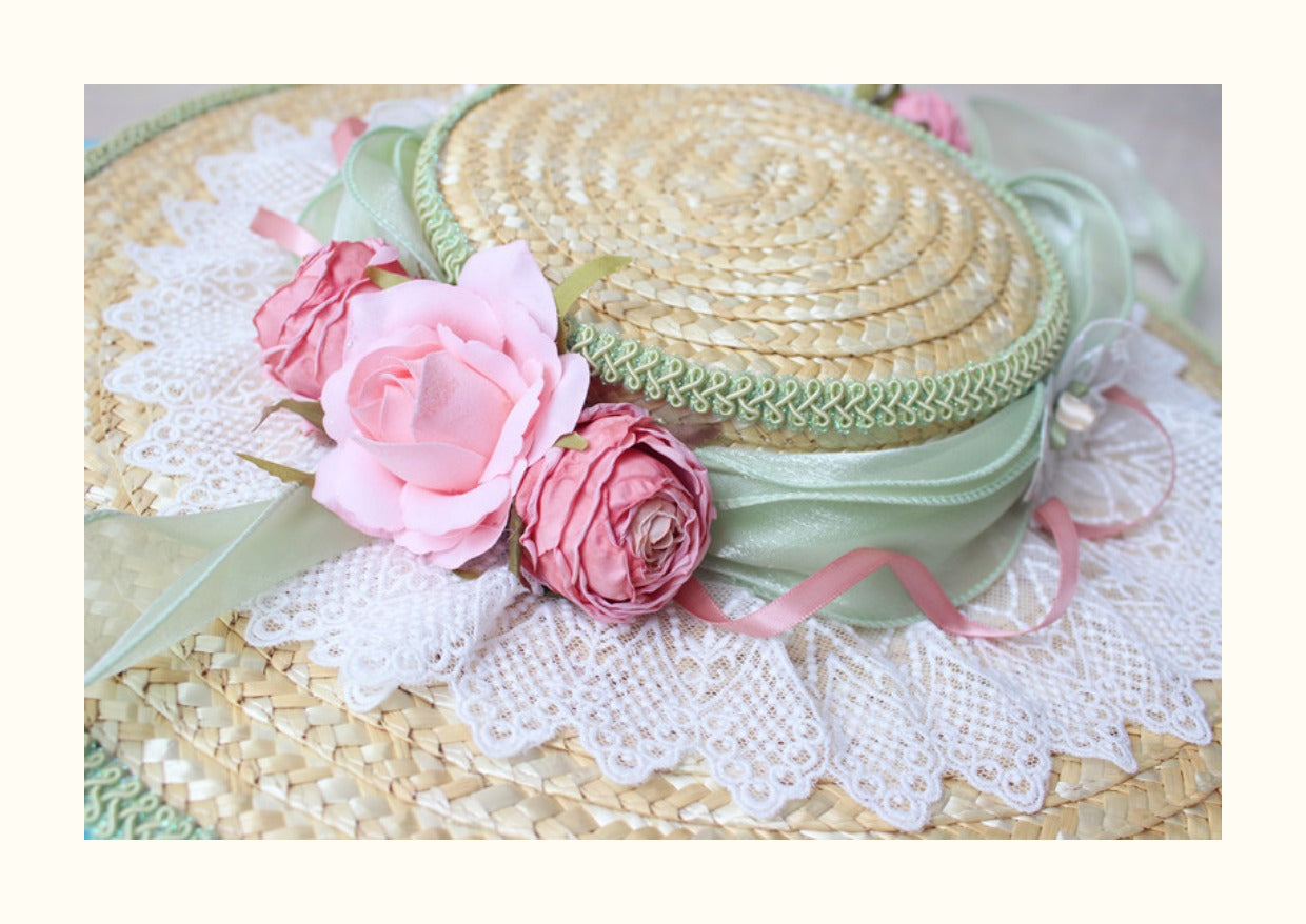 Handmade Vintage Straw Flower Bonnet Straw Hat