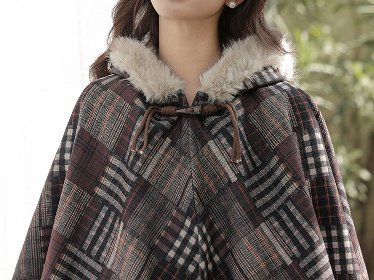 Retro Academia Plaid Hooded Cape